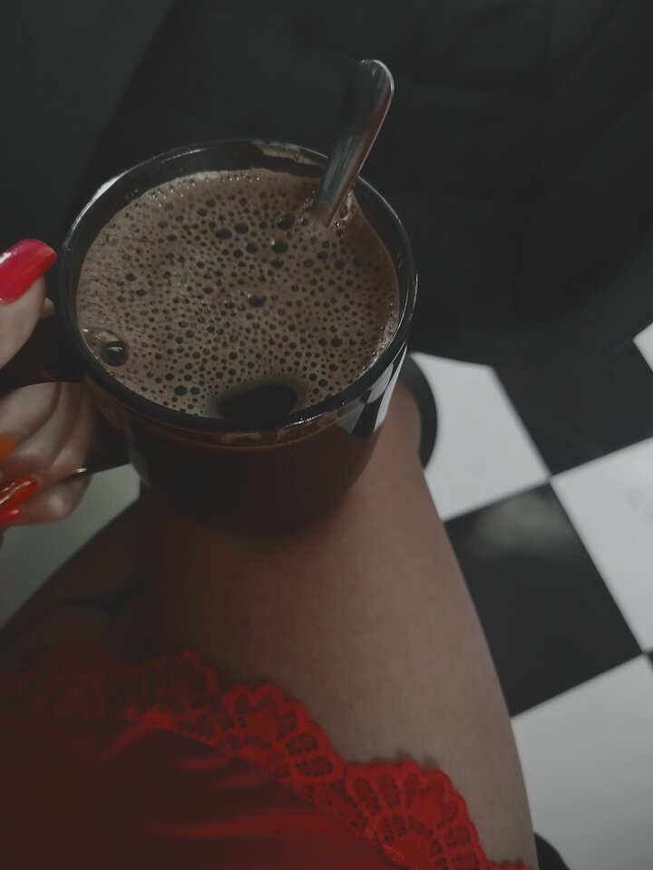 Poranek pachnie kawą i niedopowiedzeniem… Koronka miękko otula moją skórę, a ciepło filiżanki rozgrzewa dłonie. W powietrzu unosi się coś więcej niż zapach — obietnica. Nie pytaj o co chodzi. Jeśli zrozumiesz bez słów, jesteś właściwym człowiekiem. ☕🖤
