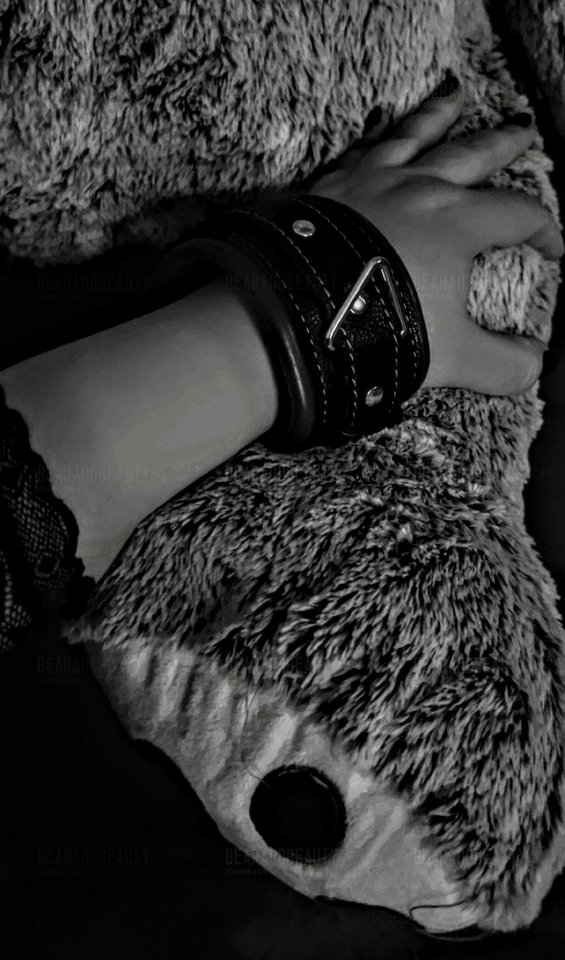 Skórzany kajdan oplata jej nadgarstek jak druga skóra, miękka, a jednocześnie nieustępliwa. Zaciska się z cichą pewnością, nosząc pamięć dotyku dłoni, które go zapięły.