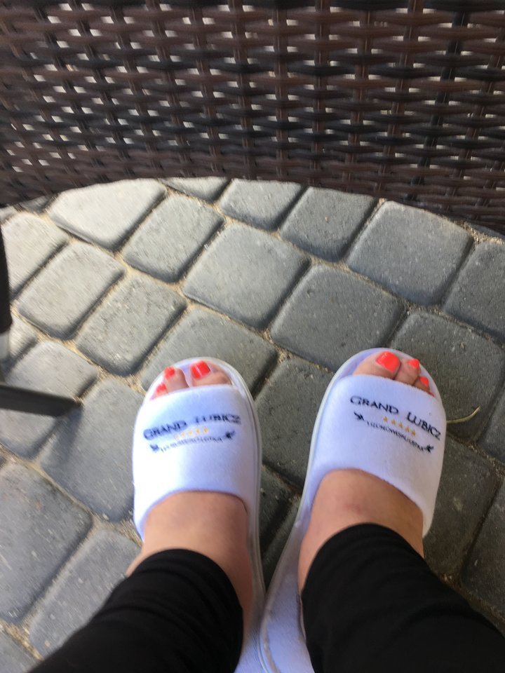 Trochę duże te kapcie mi dali :)